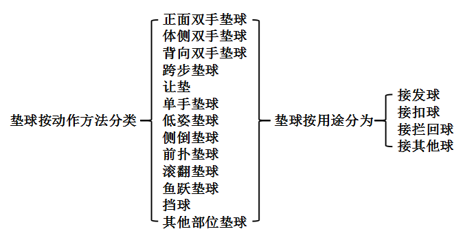(二)接扣球垫球:接重扣球;接轻扣和吊球;接拦网触手的球;接快球。
