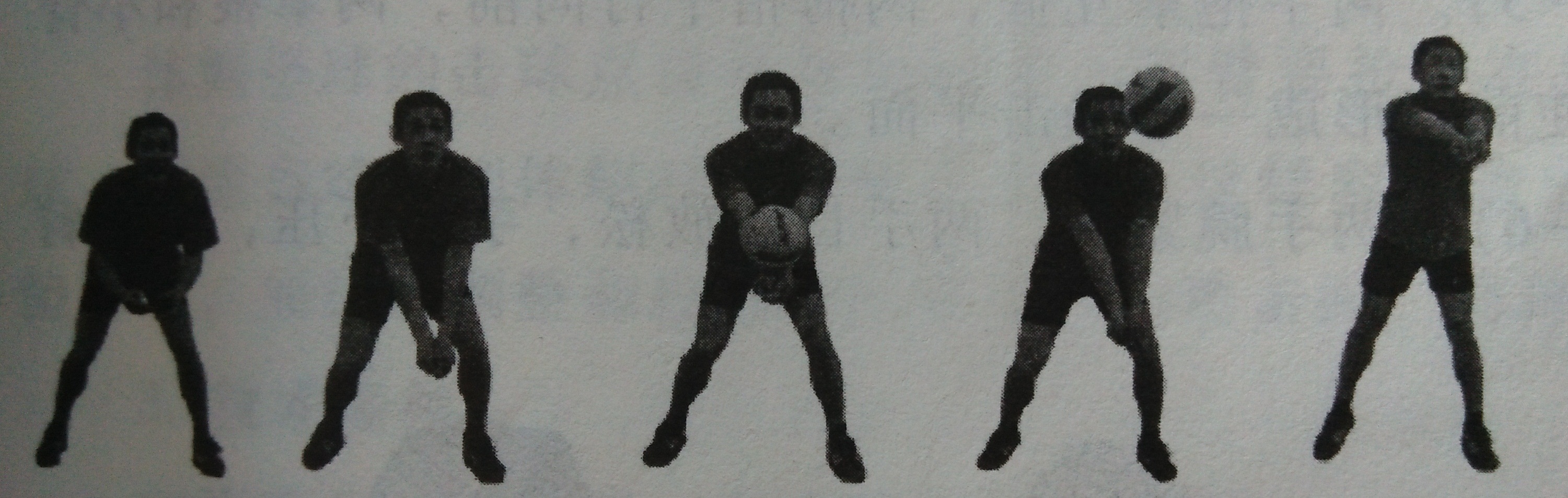 ③互靠式:两手腕紧靠,两手自然放松,手腕下压,两前臂外翻形成一个垫击平面。