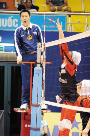 (2)对触网犯规的裁判方法:第一、二裁判员均可对,触网犯规做出判罚。裁判员观察击球时的触网或触标志杆时,应理解为击球的全过程。如拦网起跳、伸臂、击球、落地,均应算为击球的全过程,在此过程中的触网和触标志杆均应算犯规。