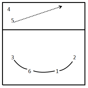 缺点:对一传和二传跑动能力的要求较高,当二传队员轮转到4号位时,跑位距离较远。尤其是对二传的传球及分配球以及场上的组织能力、应变能力要求很高。