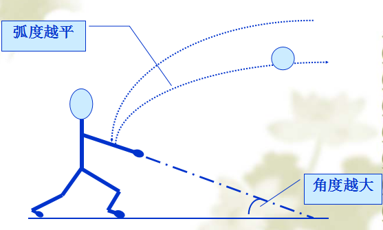 2、角度:球的飞行轨迹受开始飞行时的角度影响。