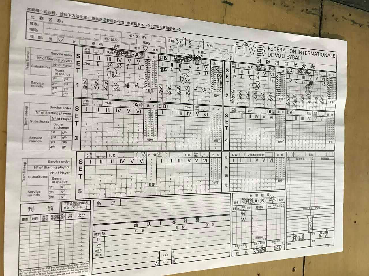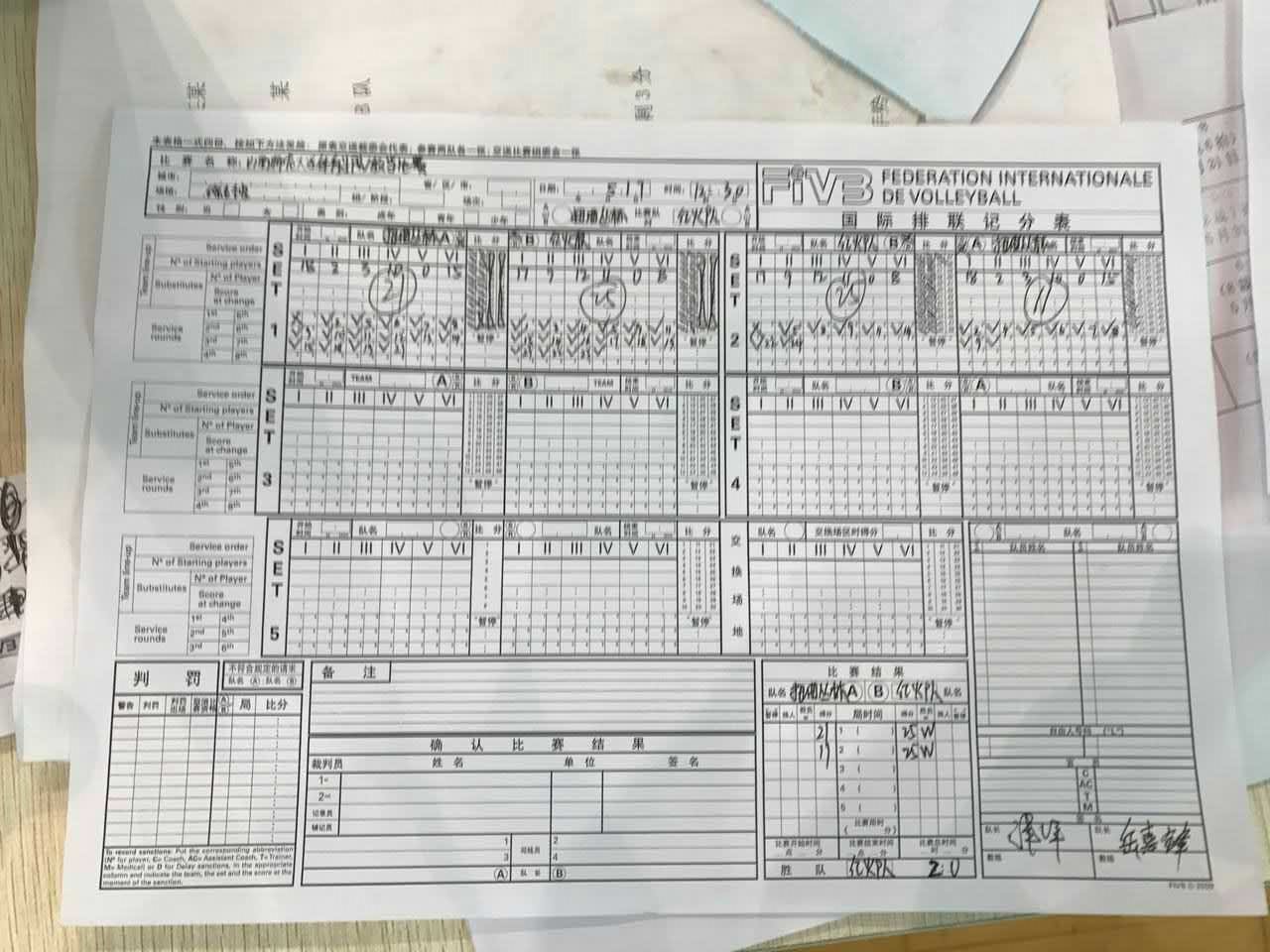 比赛记录表: