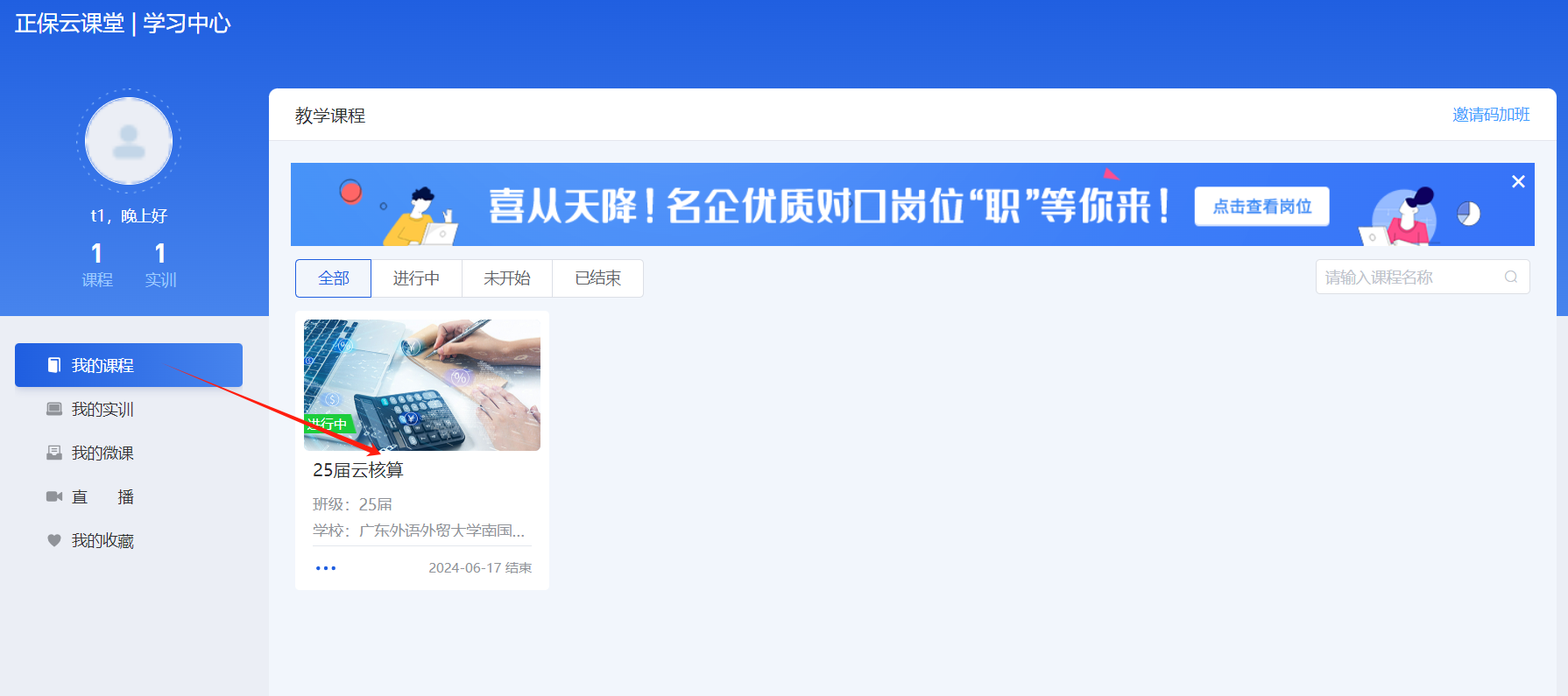 3、登录后,进入学习中心,观看“我的课程”相关视频,注意课程结束时间
