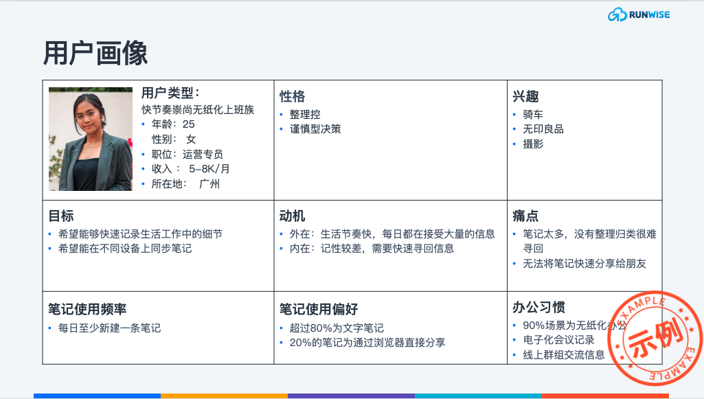 用户角色是指从生活习惯、消费行为等真实数据中提取目标用户的典型特征,根据用户的目标、行为和观点将用户分类,并通过人口统计学要素、场景等信息丰富人物形象,最终形成产品的真实目标用户的虚拟代表。