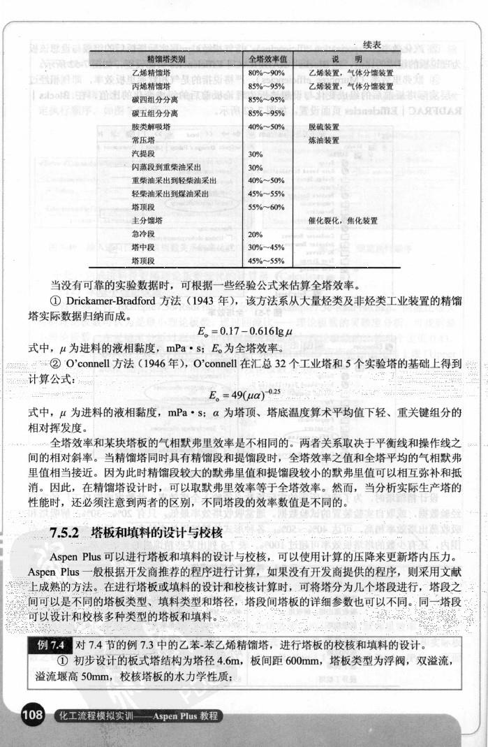 7.4 塔板和填料的设计与校核