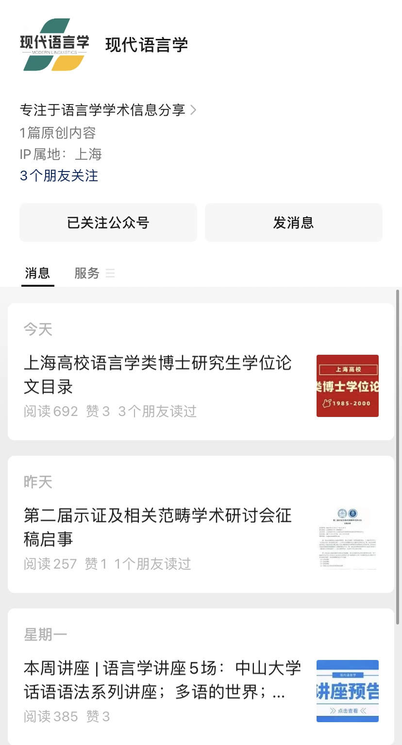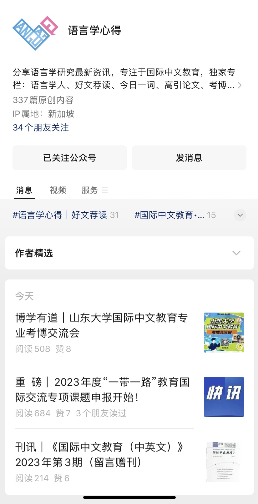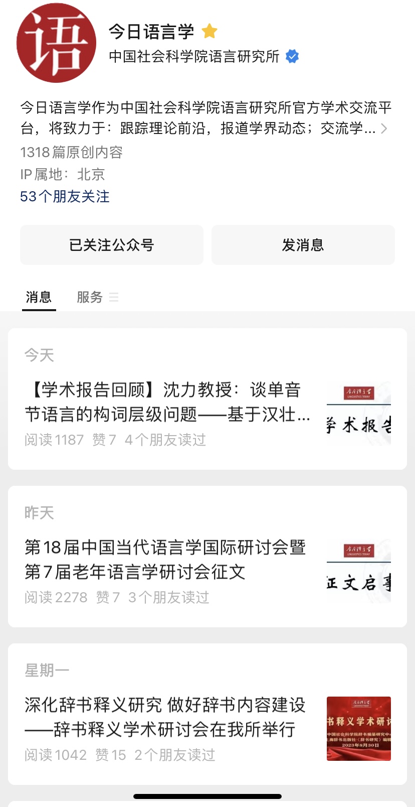 语言类公众号:今日语言学、语言学心得、现代语言学等,不时发布有关汉语本体类研究的最新资讯、期刊、讲座等。