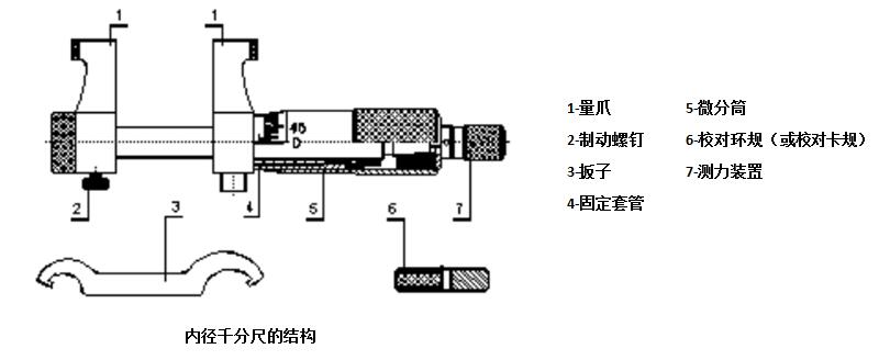 内径千分尺就是利用螺旋副原理对主体两端球形测量面间分隔的距离,进行读数的通用内尺寸测量工具。结构简图参照下图。