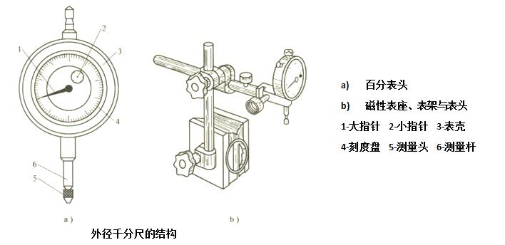 使用百分表时,就将其装在专用的百分表架上,如图下图b)所示。