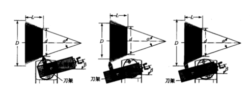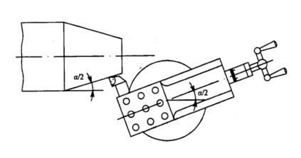 (2)确定小托板的转动角度。根据工件图样选择相应的公式计算出圆锥半角α/2,圆锥半角α/2是小托板应转动的角度。
