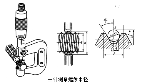 三针测量不仅用于测量三角形螺纹,而且还可广泛用来测量一些精度要求比较高的梯形螺纹和蜗杆等。