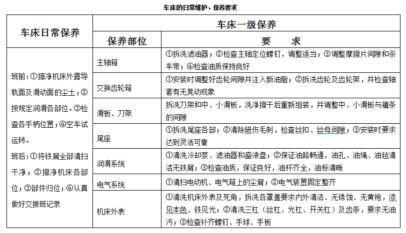 (2)车床日常保养、一级保养的要求