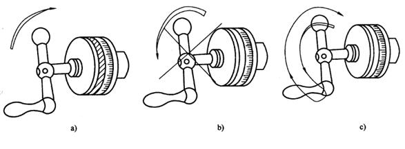 为解决这个问题,要求在使用刻度盘时,要先反向转动适当角度,消除配合间隙,再正向慢慢转动手柄,带动刻度盘转到所需的格数。如下图为消除刻度盘空行程的方法。如果刻度盘多转动了几格,绝不能简单地退回,如下图b,而必须向相反方向退回全部空行程(通常反向转动1/2圈),再转到所需要的刻度位置如下图c所示。