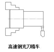 ②高速钢光刀精车时(参照下图),要求车刀刀刃锋利,车床转速要低,车床转速一般为高速钢刀具车削时的1/3左右,进给量和背吃刀量要小。车刀安装时,车刀的切削刃一定要平行于工件加工表面,使用切削油冷却。