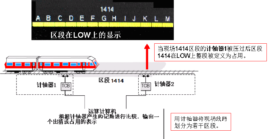 计轴系统是线路空闲/占用状态的自动检测装置。用于定位列车在线路上的位置,列车的定位以占用计轴区段的形式表现。