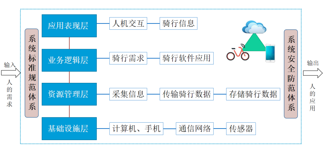 用户通过手机App来完成解锁、缴费、查看时间、里程、线路等一系列操作。这属于应用表现层。应用表现层主要用于实现人机交互的功能。