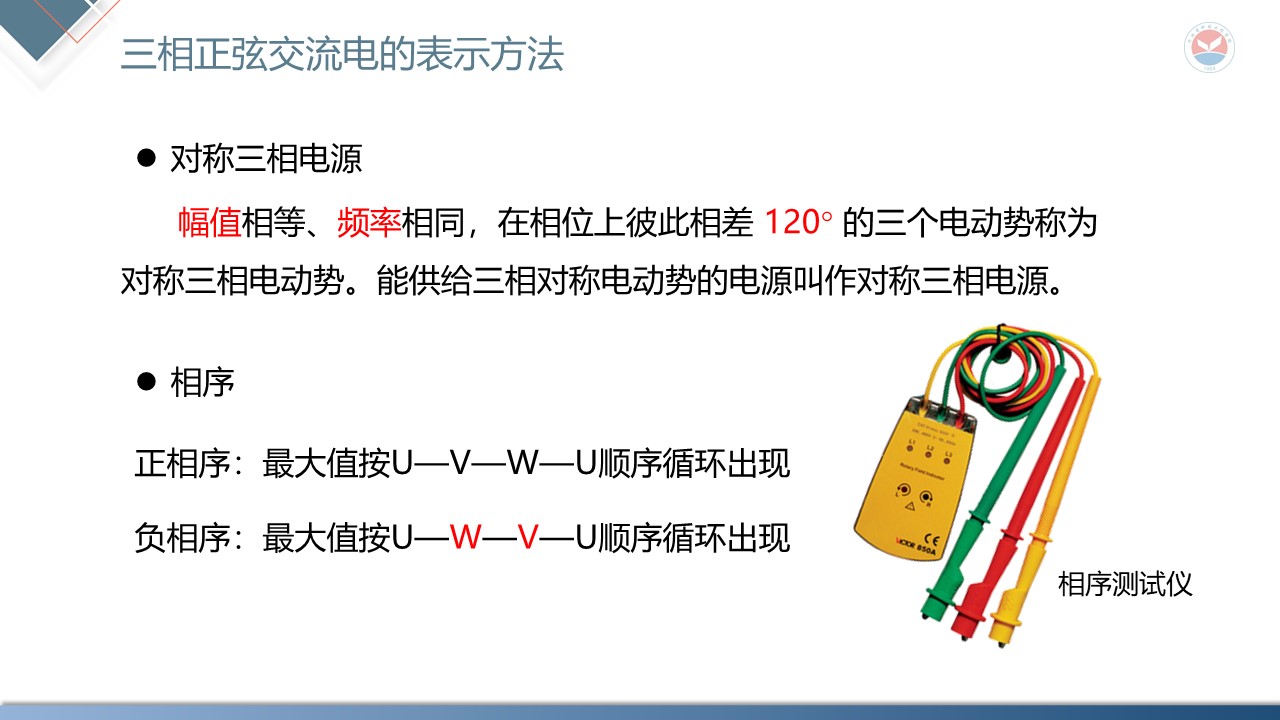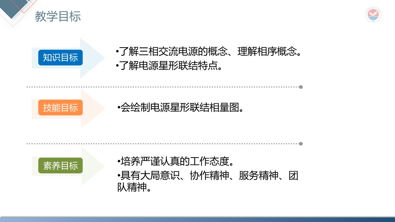 知识目标:1、了解三相交流电源的概念及相序的概念