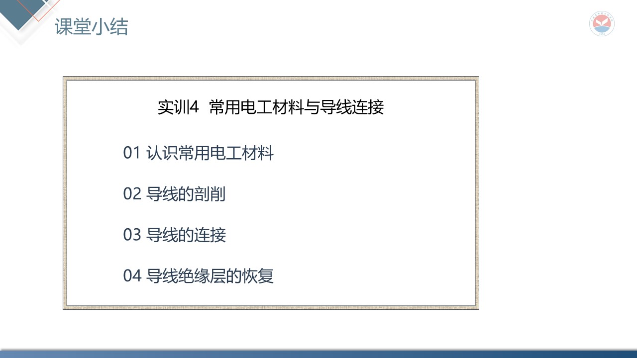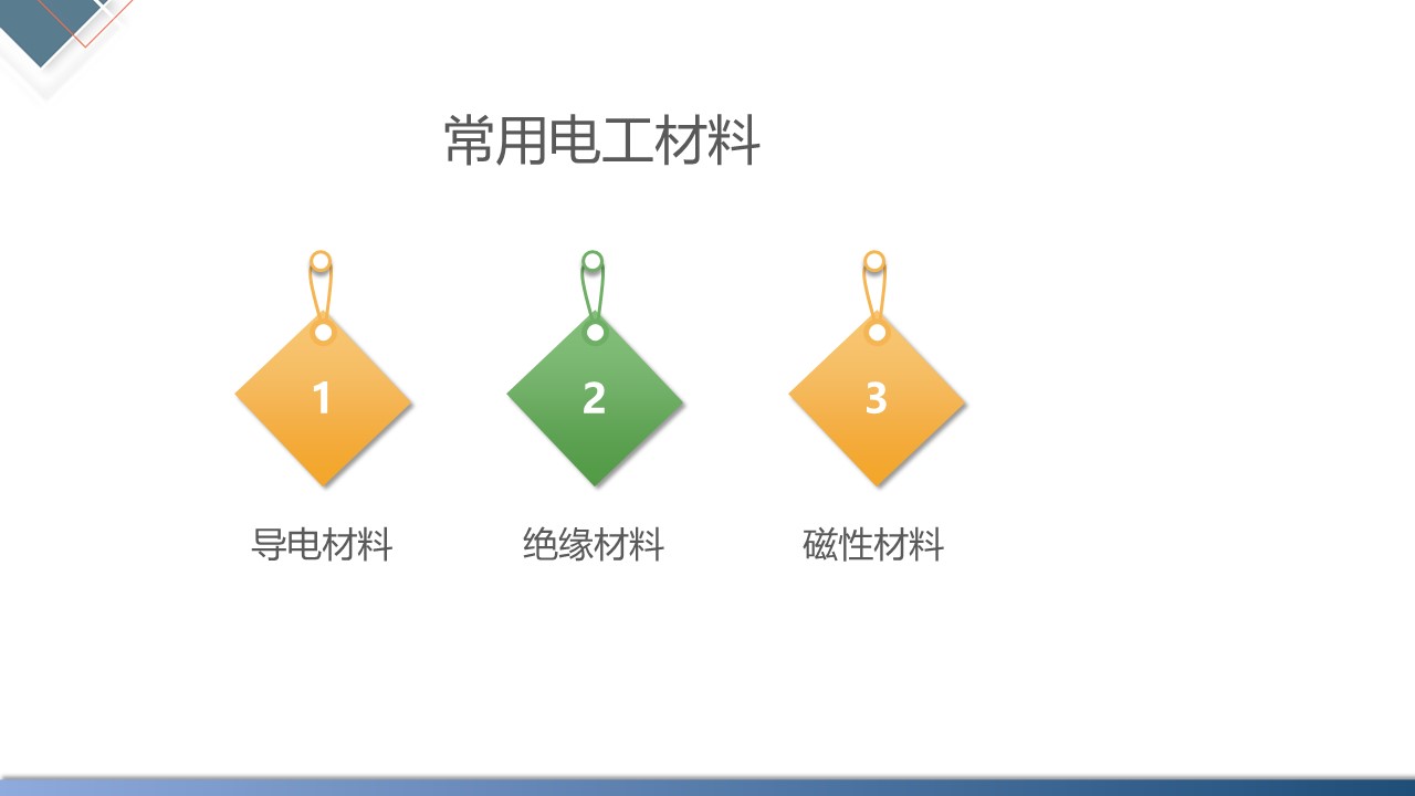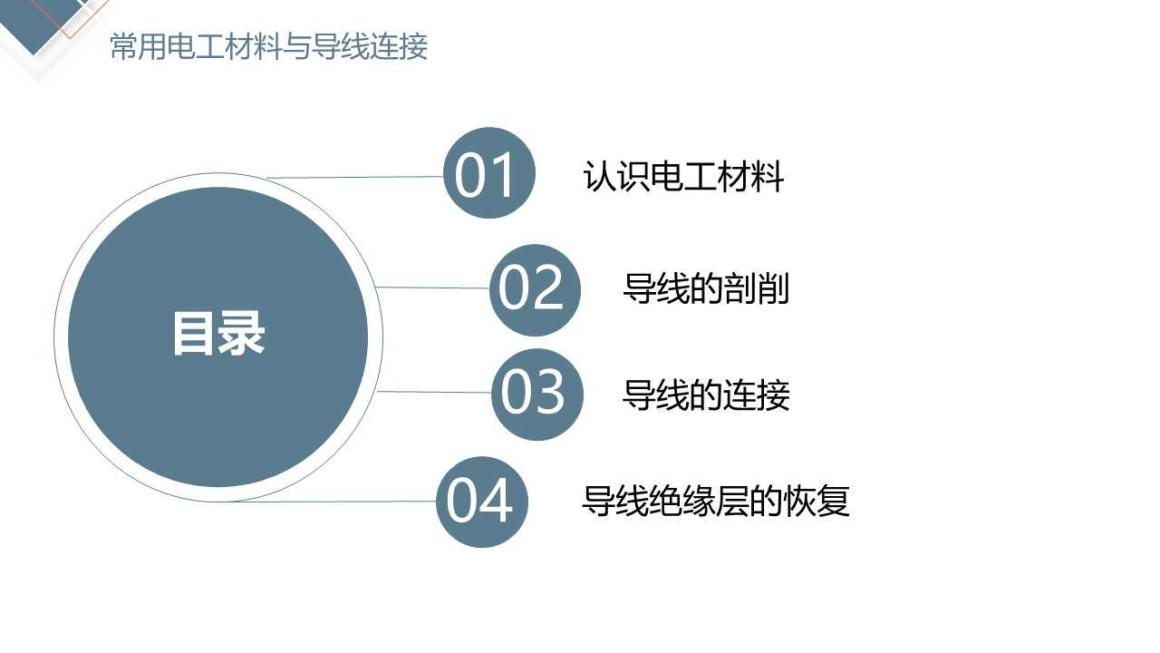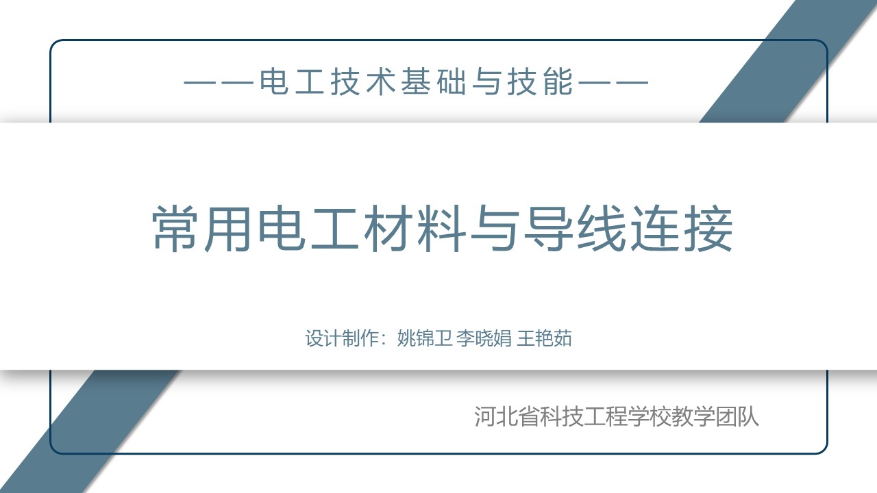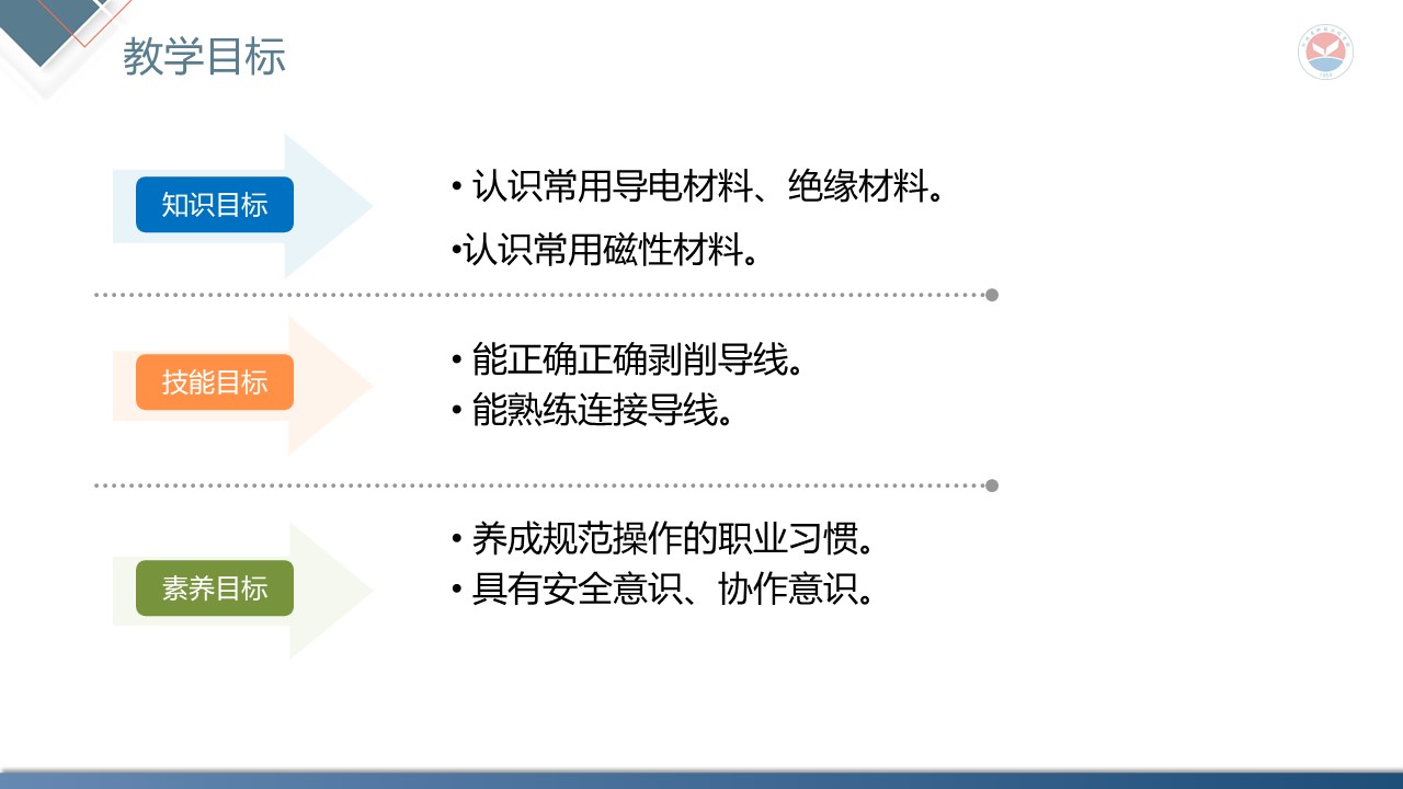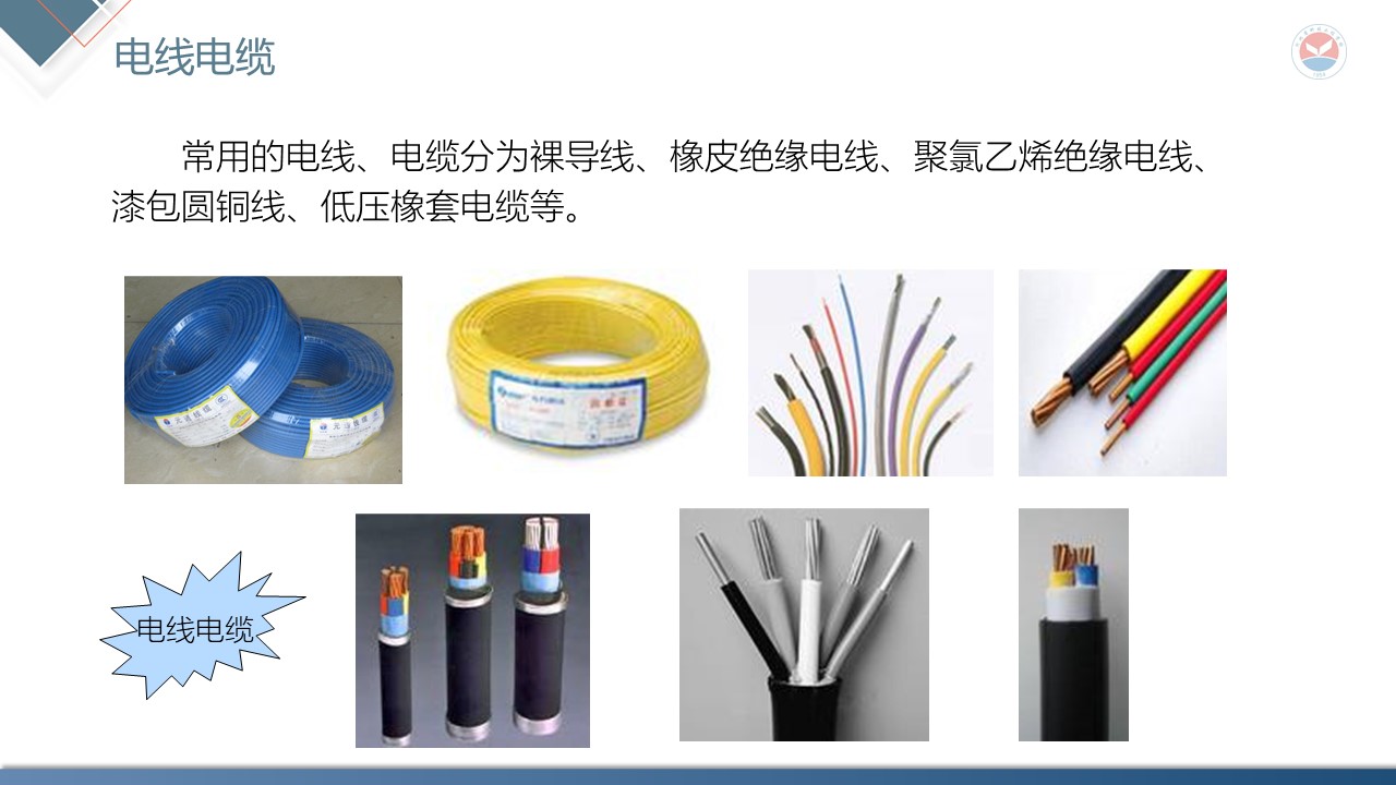 知识目标点:常用导电材料、绝缘材料;常用导线的规格和用途