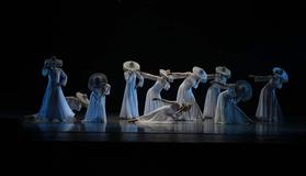 通过《春分花信来》中舞者们的动作、情绪、队形以及音乐的传导来表达我们对山河大地的赞美与喜爱之情。该作品体现了女子娇柔的外表下蓬勃的生命力,其潇洒洋溢的热情,仿佛在观众眼前绘出了一幅幅春天万物复苏,百花齐放争鸣斗艳的美丽画卷。它表达了劳动人民对春天的赞美,对生活的新希望。同时也表达了对祖国大好山河的热爱之情。