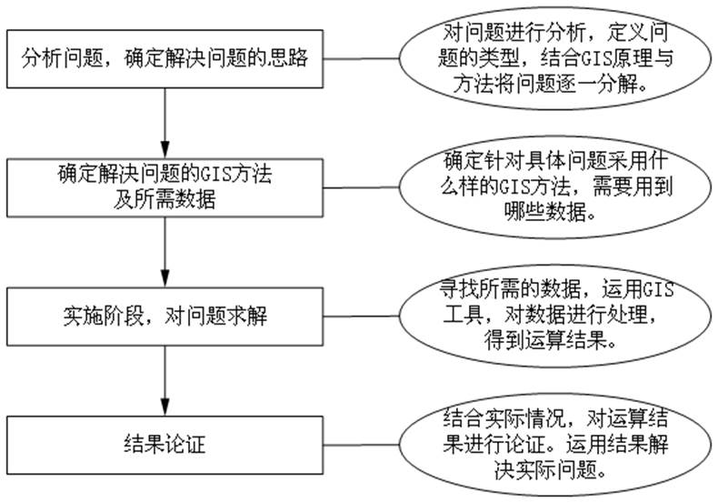 规划定义阶段是基于领域知识、问题特点,结合GIS的功能与性质,对问题进行抽象、分解,从而确定源问题与GIS的对应关系,建立应用GIS解决问题的方法与模型。