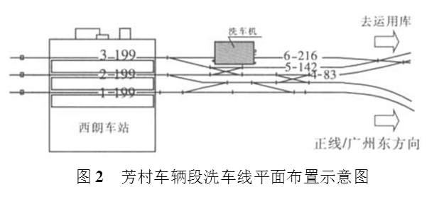 图2是芳村车辆段的洗车线平面布置图