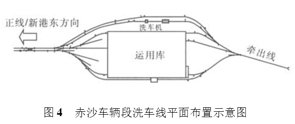 图4是赤沙车辆段的洗车线平面布置图。