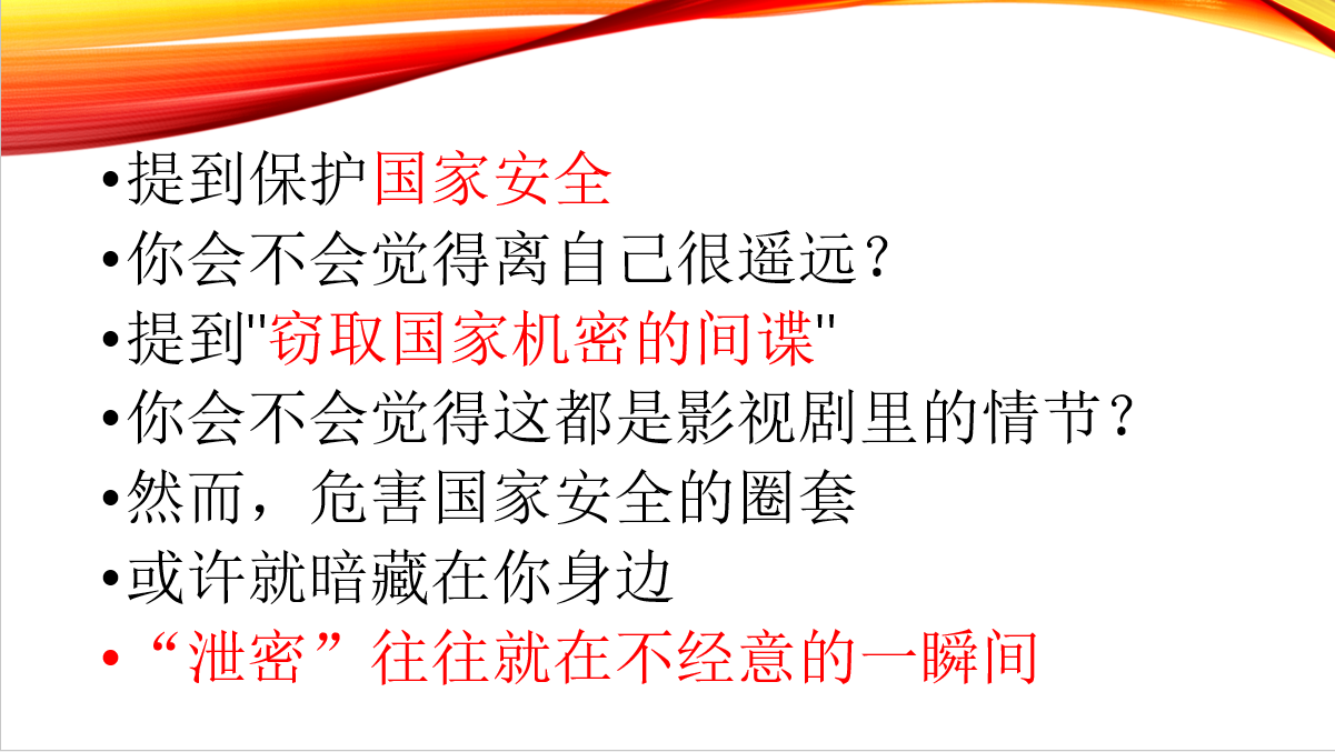 请同学们上网搜集“国家安全包含哪些方面,遇到危害国家安全的行为,我们如何做”的资料,以小组为单位,制作一个宣传国家安全的小短片。