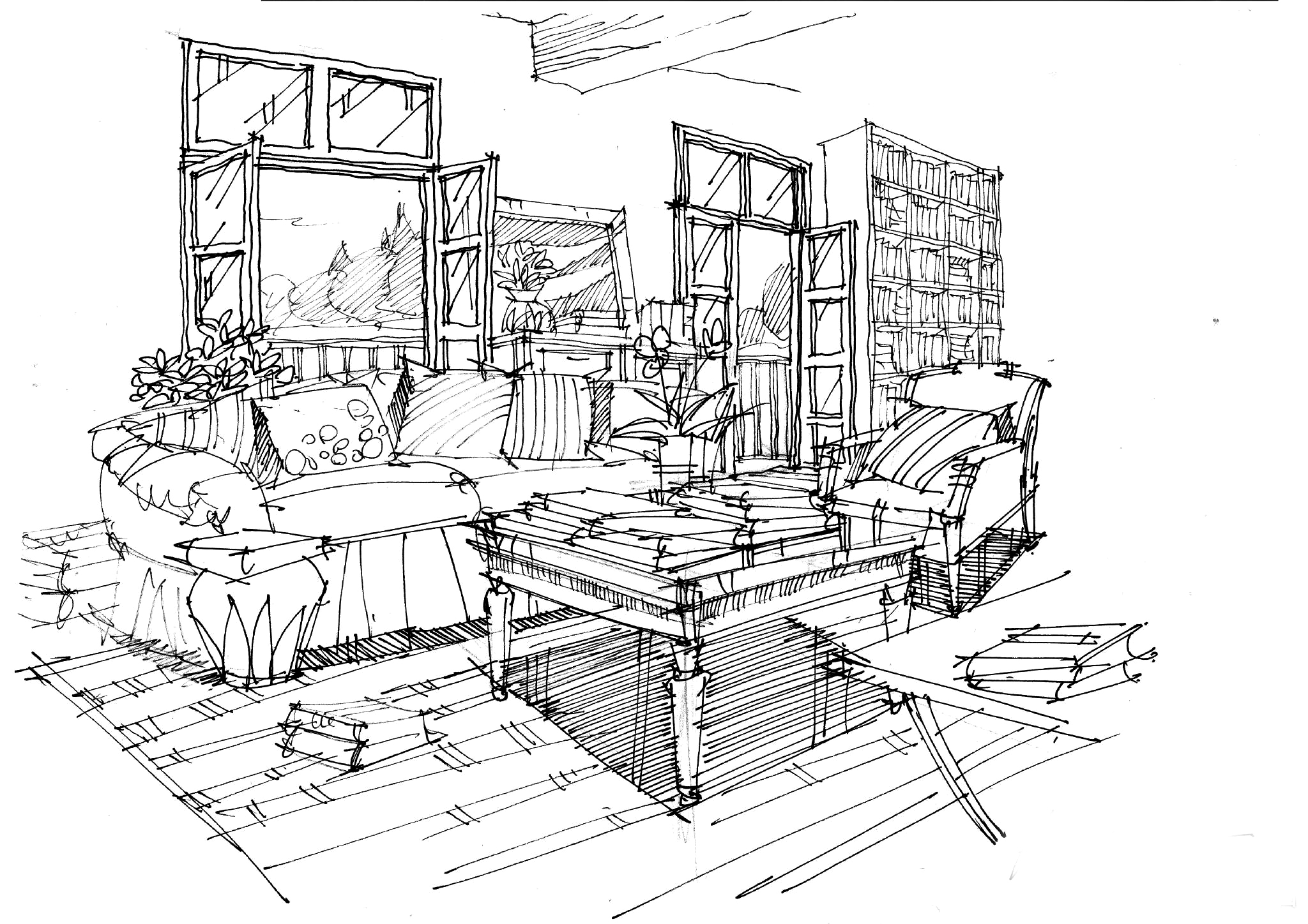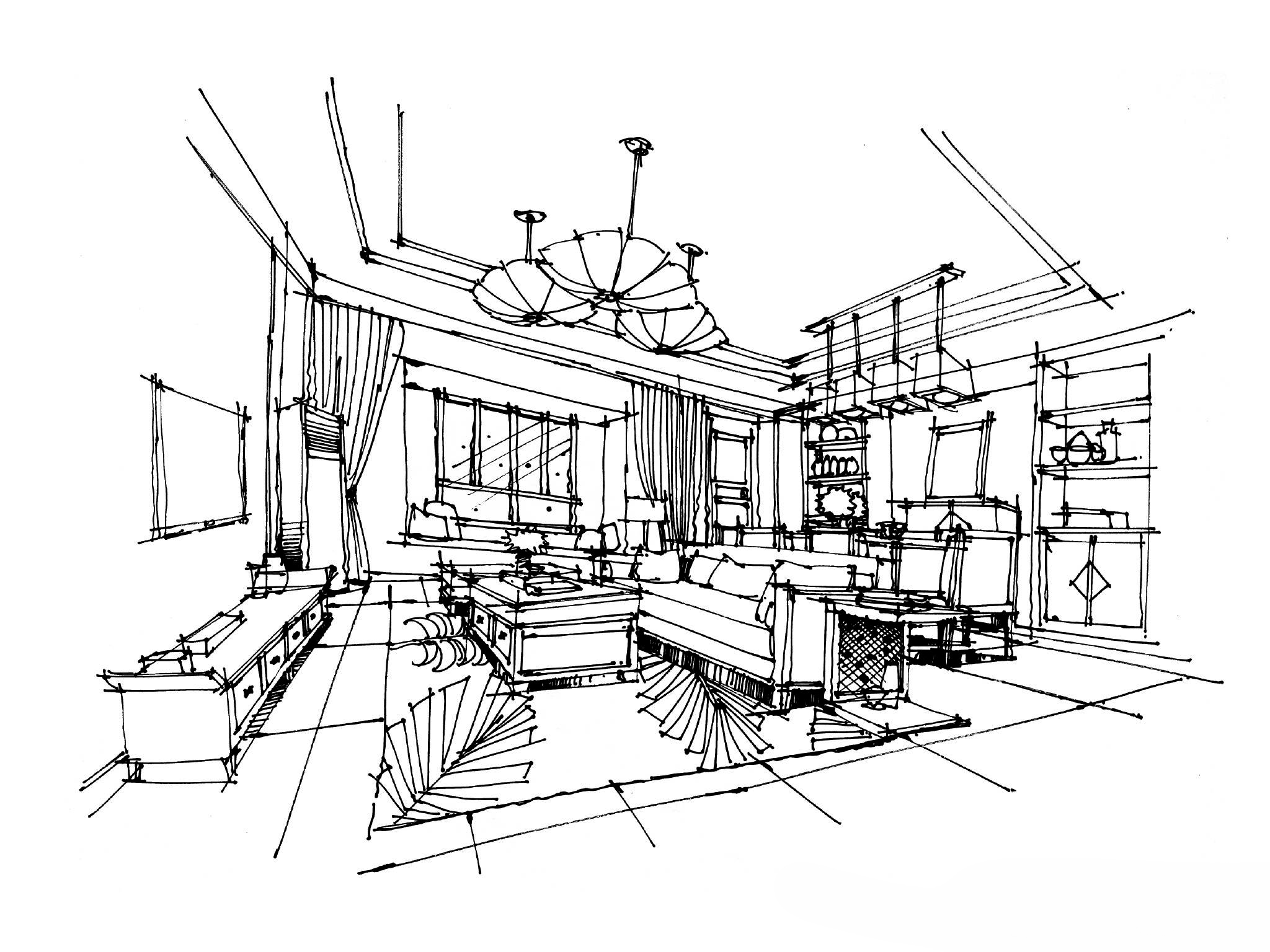 3.3 客厅空间线稿表现