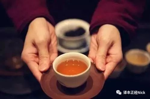 Tea is not plain water, it can nourish your palate and mind(茶不只是水,能满足味觉体验、滋养心灵). If you're not thirsty, do not drink up Puerh tea at once (除非口渴,切勿举杯一饮而尽). On the contrary, you should take a sip (吸吮一小口) and savor the flavor (细细品味), from astringency to sweetness till the long aftertaste(从苦涩,到甘甜,再到绵长回甘), you may find words are too plain to describe this fascinating process(这过程妙不可言).