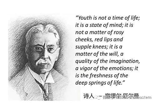 青春不是年华,而是心境;青春不是桃面、丹唇、柔膝,而是深沉的意志、恢宏的想像、炽热的感情;青春是生命的深泉涌流。