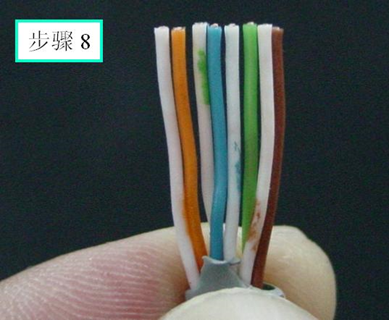 A端:橙白,橙,绿白,蓝,蓝白,绿,棕白,棕;