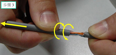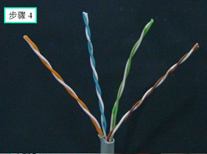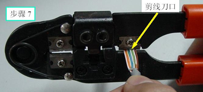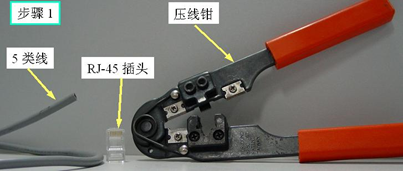 实验步骤(以机器与集线器连接之RJ45头的制作为例,采用T568B标准)