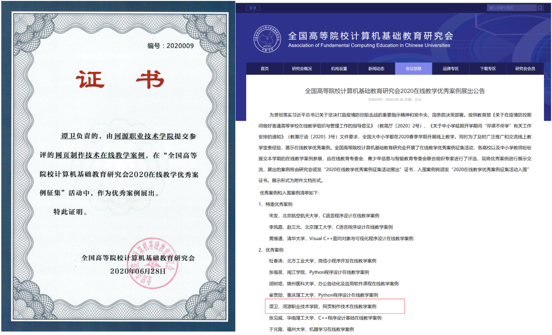 2.获评全国高等院校计算机基础教育研究会2020在线教学优秀案例
