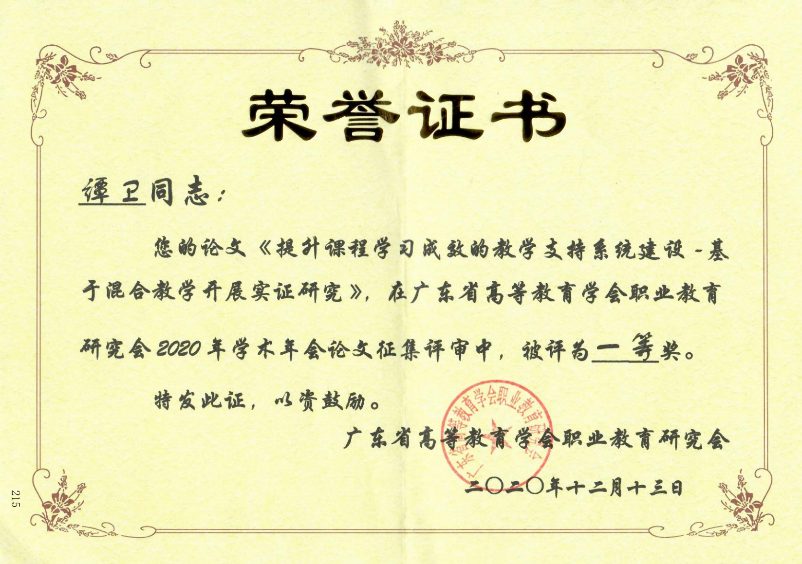4.案例依托课程《网页制作技术》积极进行教学改革与教学理论研究,撰写的论文获广东省高等教育学会职业教育研究会论文一等奖。