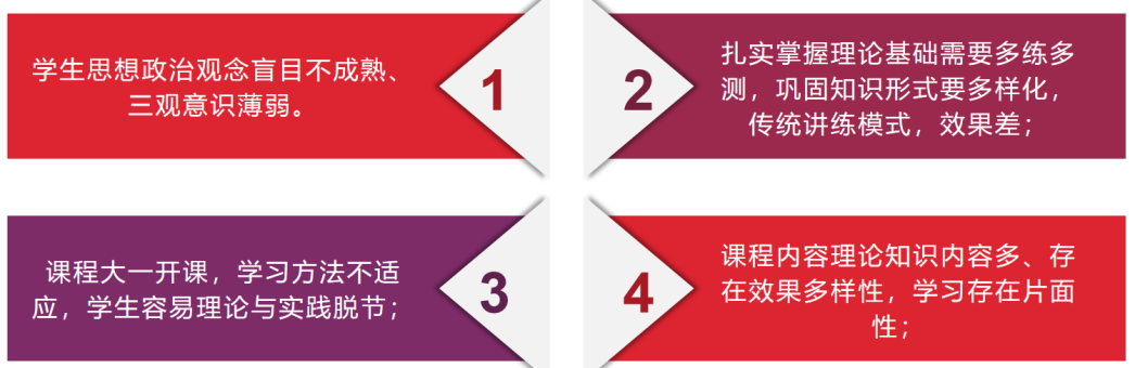 鉴于以上两个学习目标,考虑学生学情及课程情况,得出课程教学会面临以下4个问题: