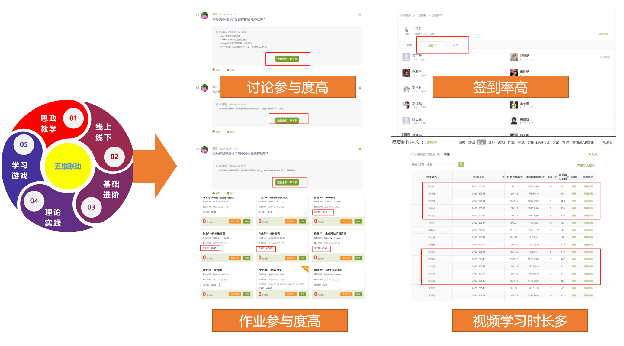 2.五维联动,学习参与度高,学习成效显著提高