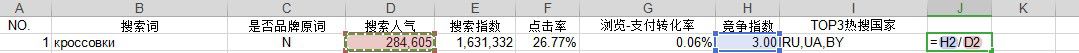 对于我们选品来说,分子越小,竞争指数越小;分母越大,搜索指数越大。