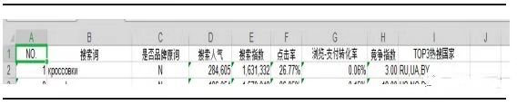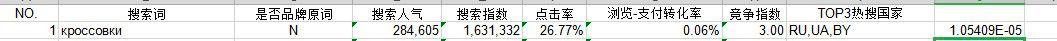 表格里除了热搜词,还陈列了包括--搜索人气--搜索指数--点击率--浏览支付转化率--竞争指数--热搜国家等各项数据。