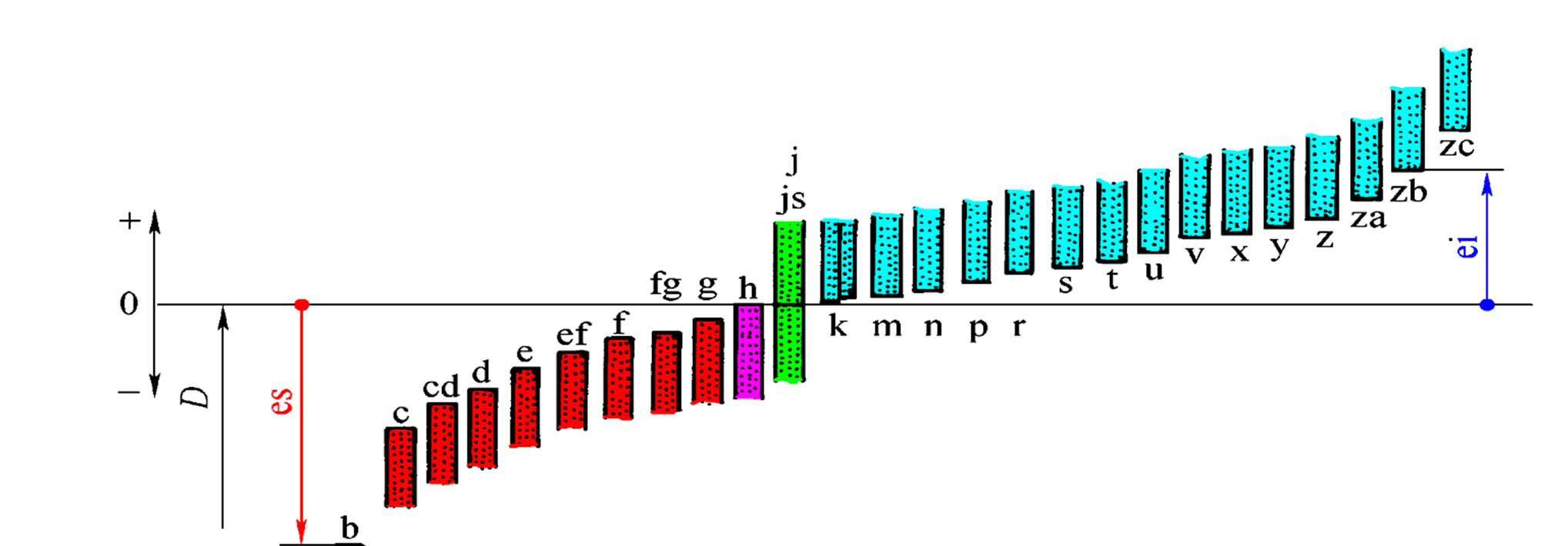 基本偏差是用以确定公差带相对于零线位置的上偏差或下偏差,一般为靠近零线的那个偏差。国家标准规定了孔和轴的各有28种基本偏差,见下图。这些不同的基本偏差便构成了基本偏差系列。
