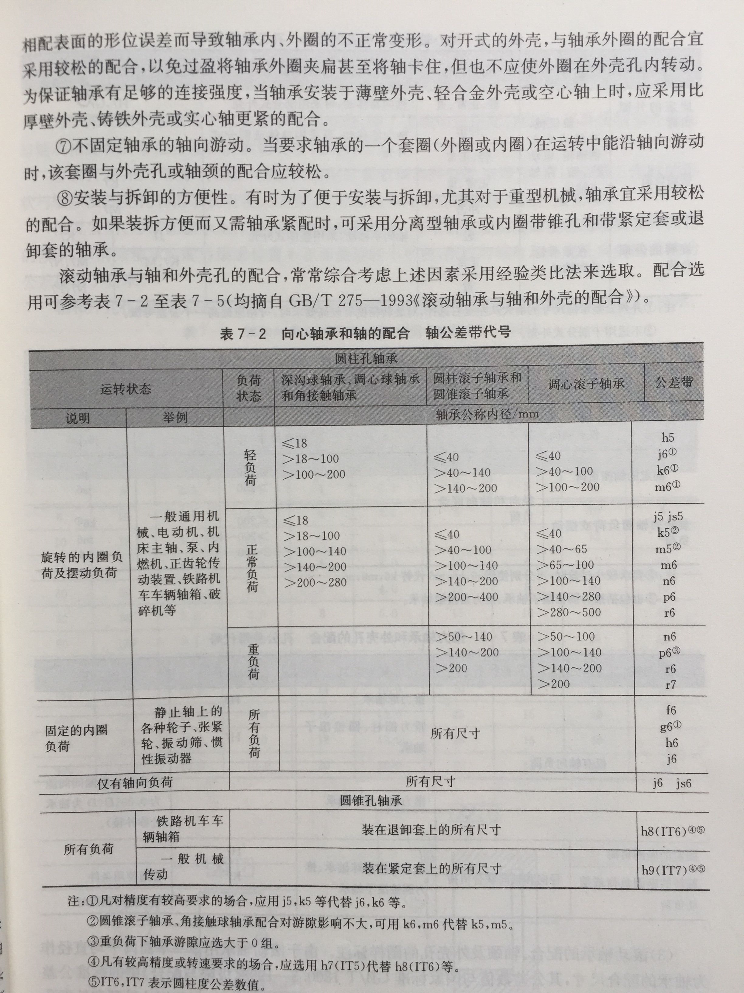 选择轴承配合时,应综合地考虑:轴承的工作条件、作用在轴承上负荷的大小、方向和性质、工作温度、轴承类型和尺寸、旋转精度和速度等因素。