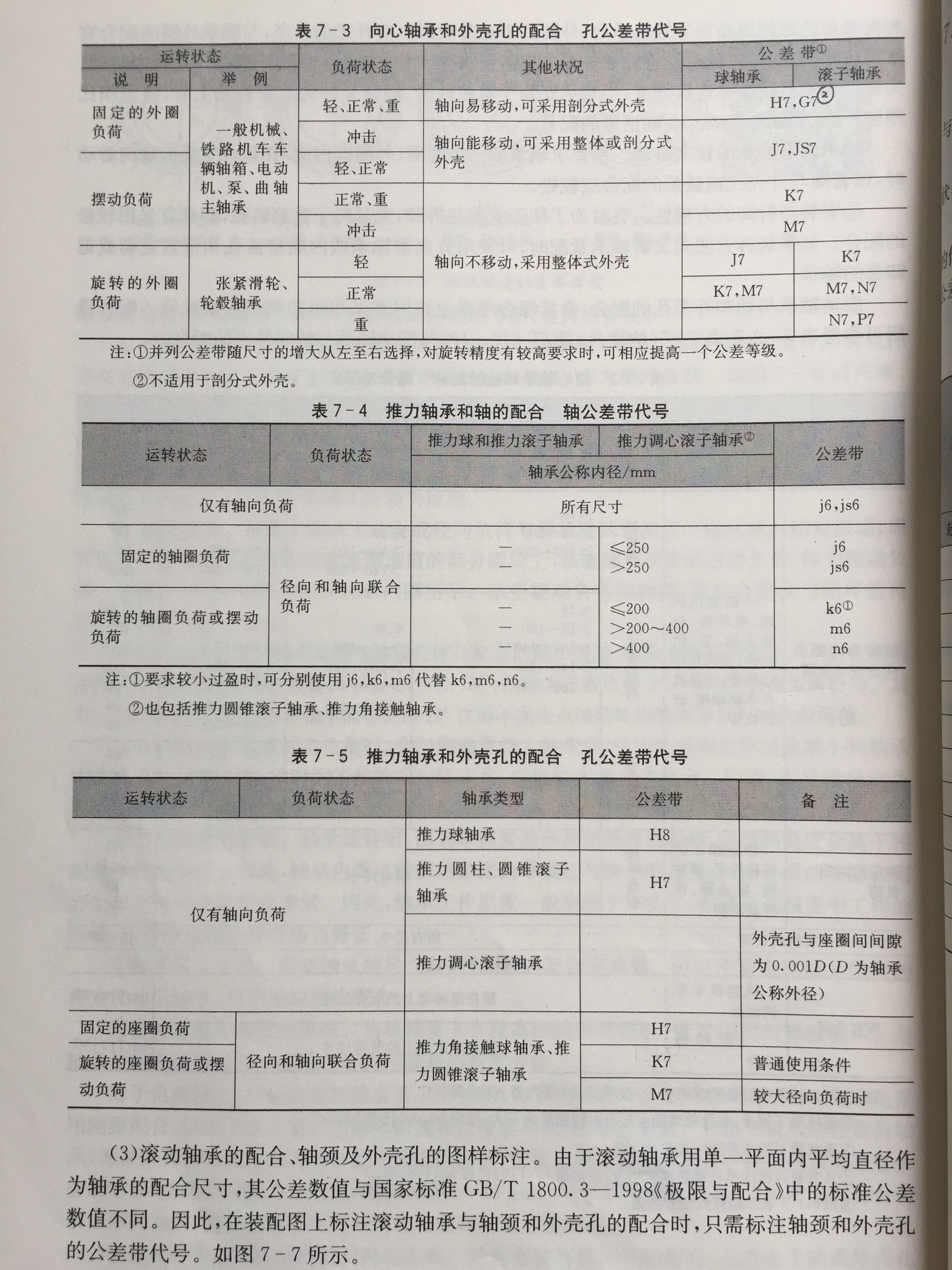 轴承外圈外径公差带与一般基轴制公差带的位置相同,在零线下方。 滚动轴承属于标准零件,轴承内圈与轴颈的配合属基孔制的配合,轴承外圈与壳体孔的配合属基轴制的配合。但轴承公差带均采用上偏差为零、下偏差为负的单向制分布,故轴承内圈与轴颈得到的配合比相应光滑圆柱体按基孔制形成的配合更紧。