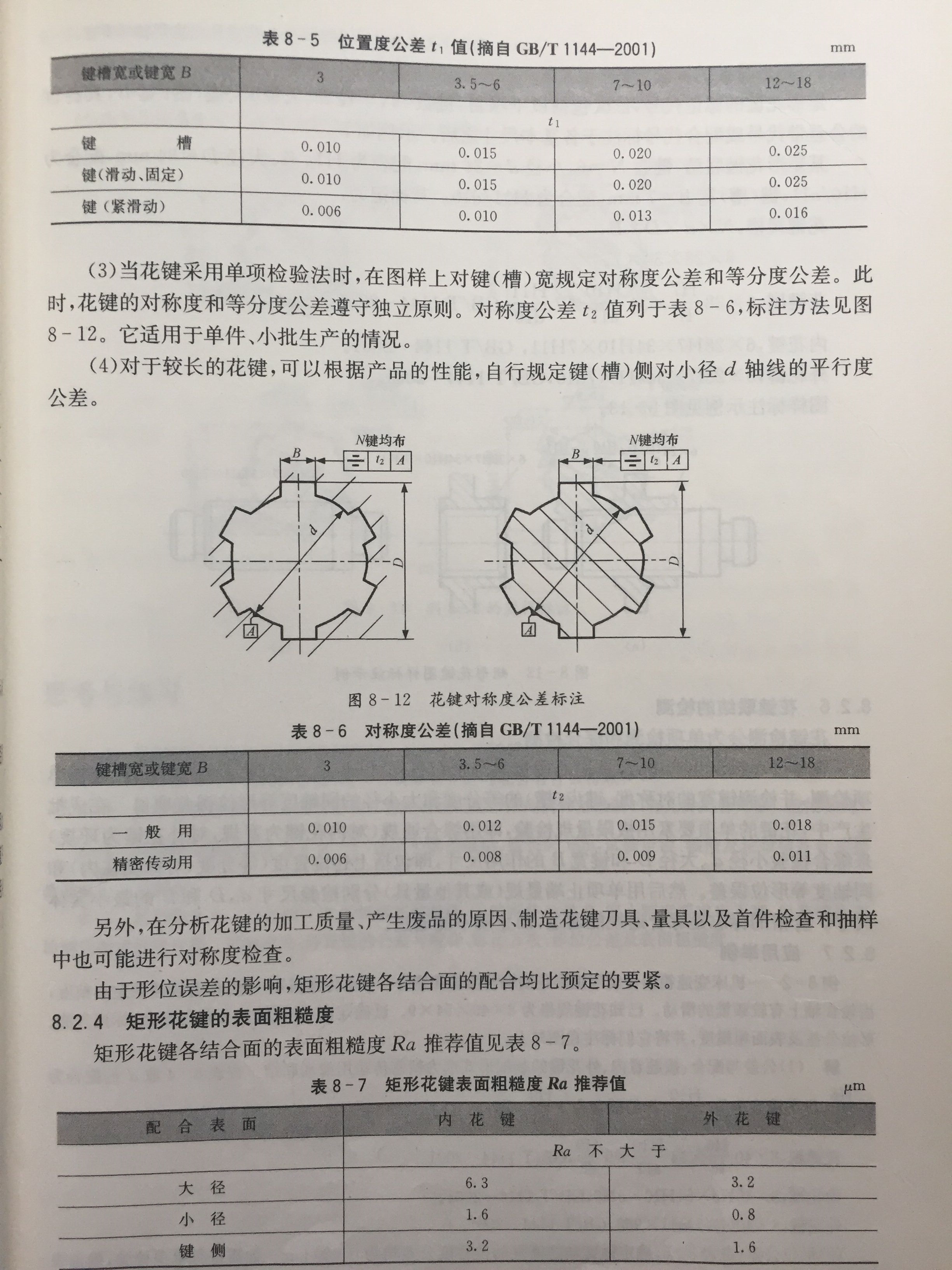 (4) 对于较长的花键,可以根据产品的性能,自行规定键(槽)侧对小径d轴线的平行度公差。