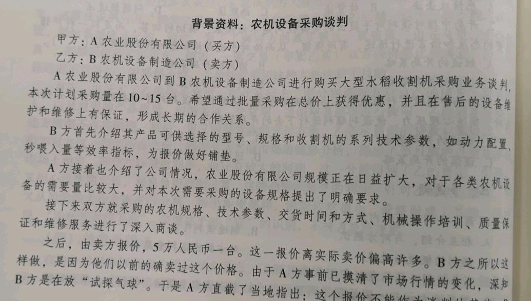 案例分析:商务谈判的开局词设计—农机设备采购谈判