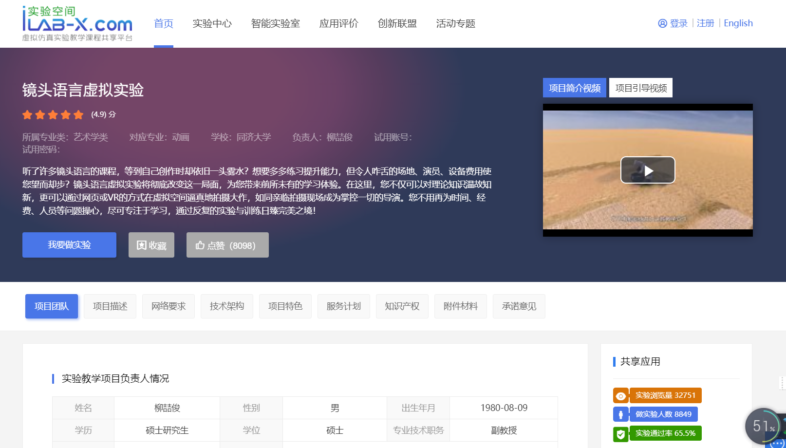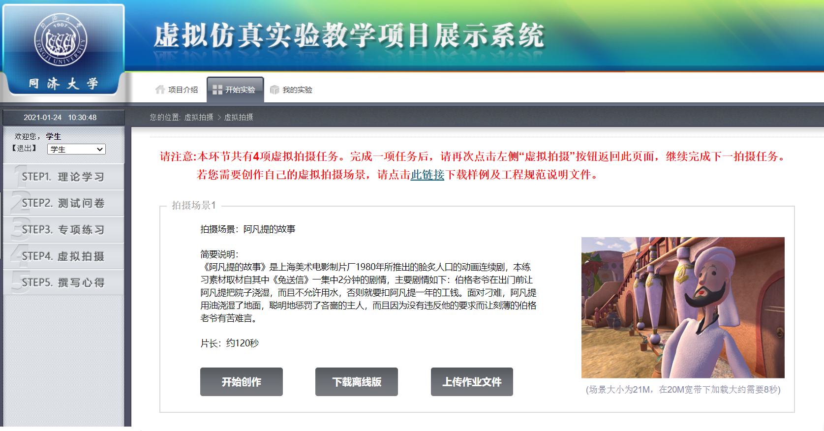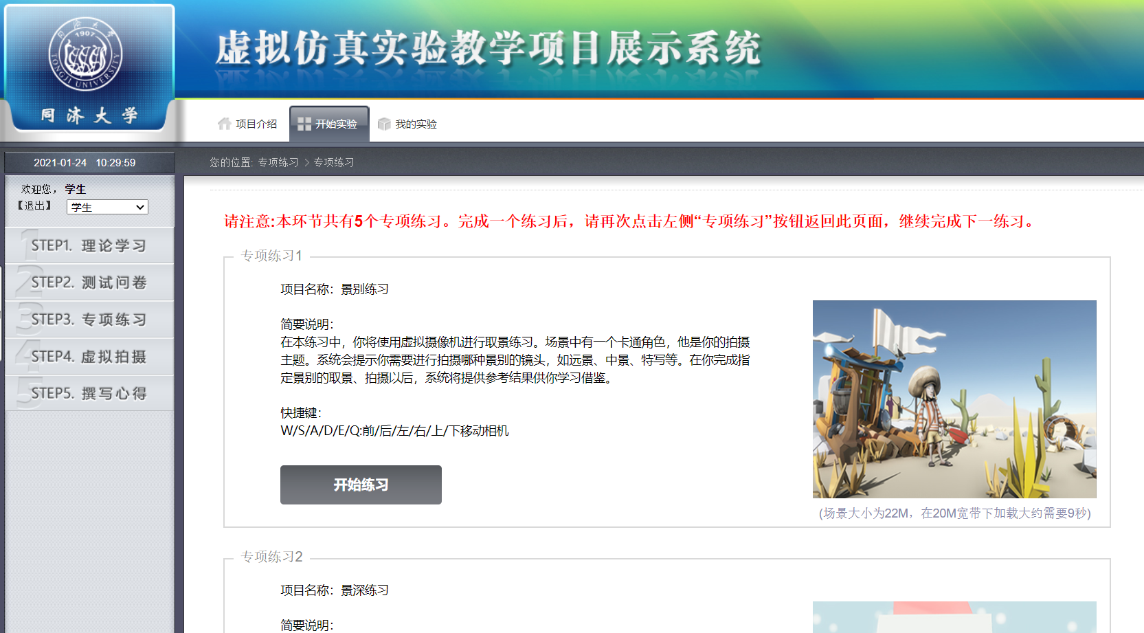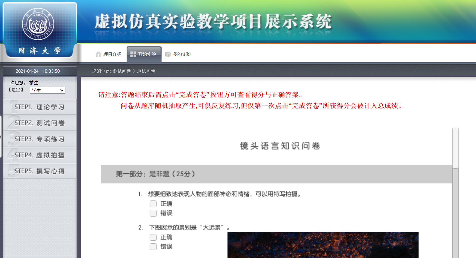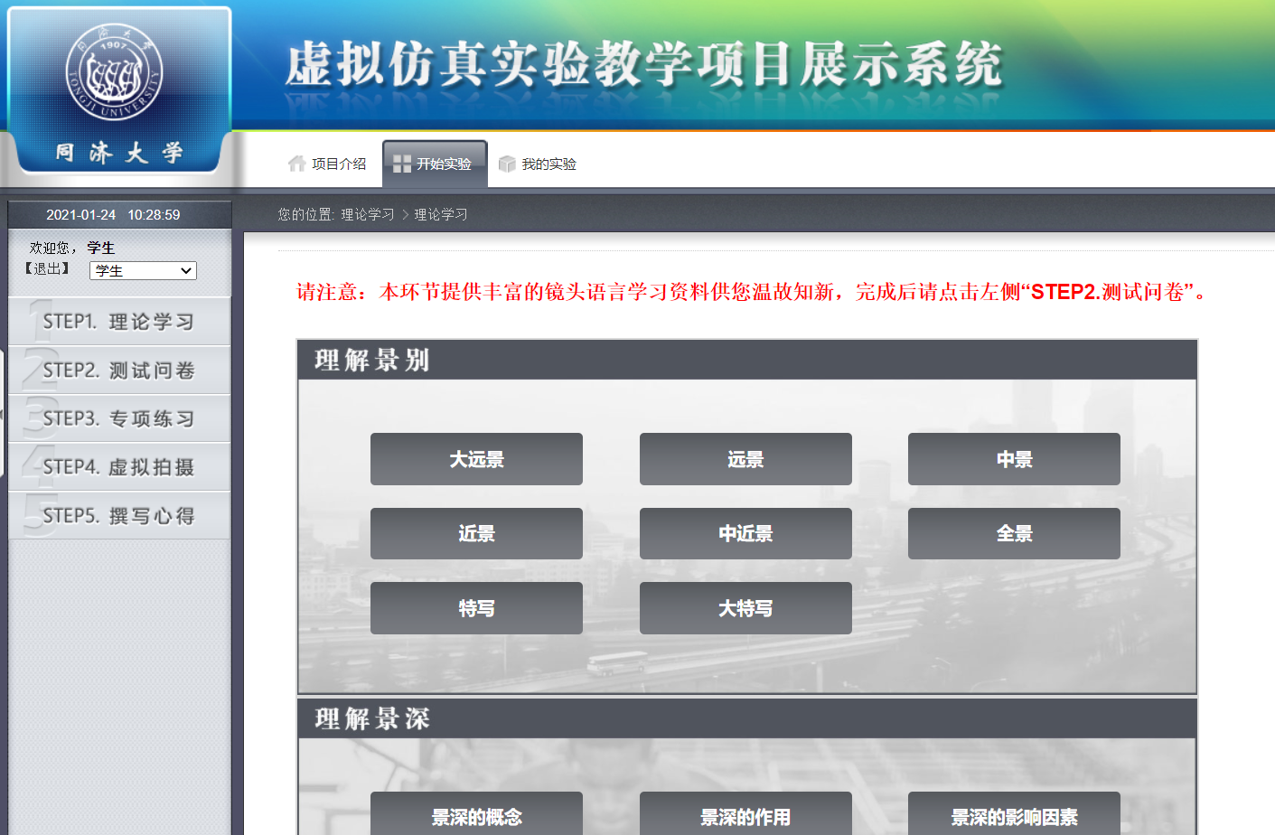 1. 访问同济大学“镜头语言虚拟仿真实验”平台。