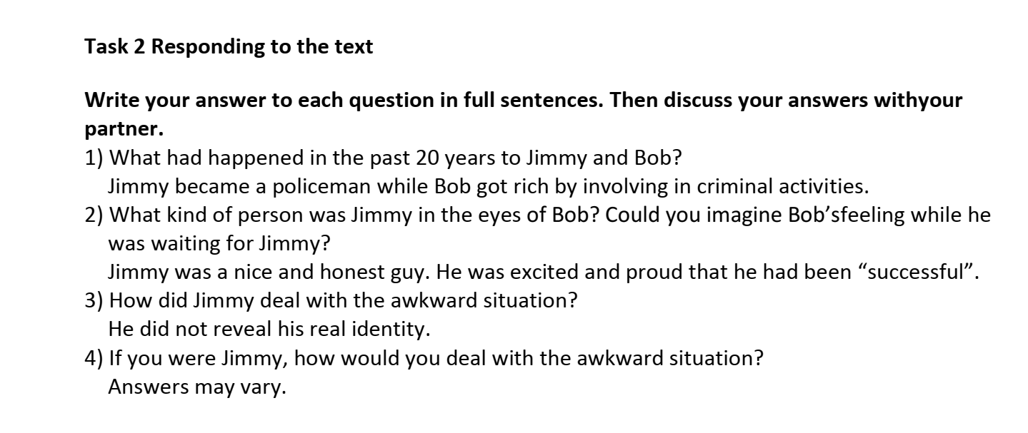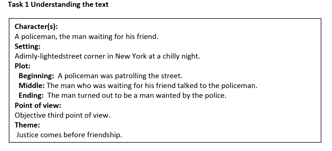 认真阅读课本Part2 Case analysis:TextA After Twenty Years(page 41)标注出有关记叙文写作的几大要素及其典型特征,总结和分析作者运用人物刻画的技巧和方法,完成ACTIVITY3的练习。同时需完成课后ACTIVITY 1,2的练习。