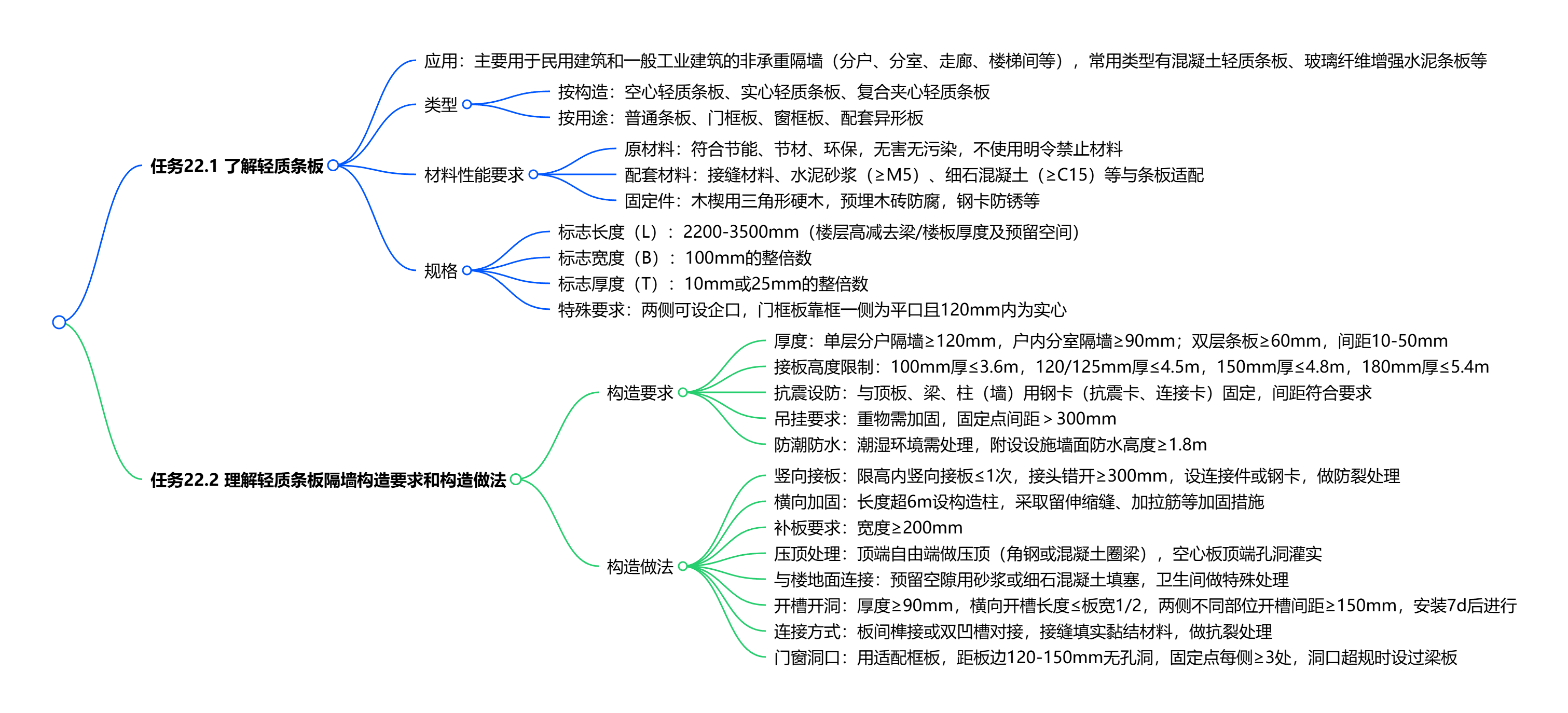 介绍轻质条板这一新型预制构件的应用、类型、材料性能要求和规格,讲解轻质条板隔墙的构造要求和构造做法。