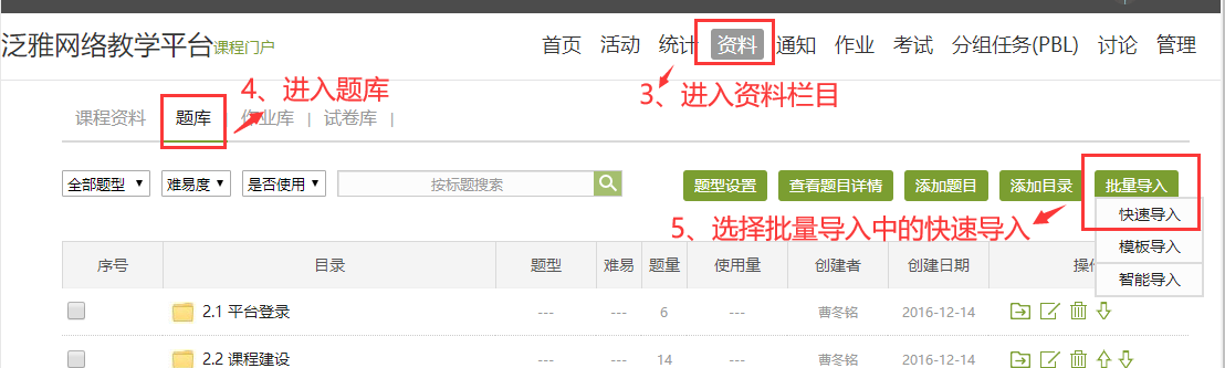 2.3 方式1:快速导入题目