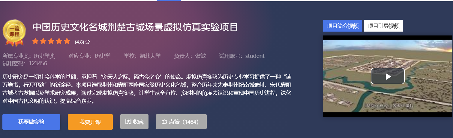 中国历史文化名城荆楚古城场景虚拟仿真实验项目