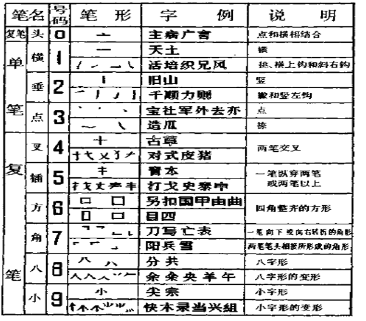 (五)號碼检檢字法:由筆形得來的數字號碼排列漢字