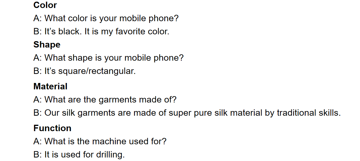 Practice describing any three products at hand, including their sizes, colors, materials, shapes and functions.