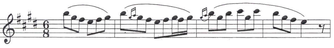 b小调,单三部曲式。用于剧中第三幕。阿塞是挪威老农妇的典型形象。她的丈夫将家产挥霍殆尽后,她带着小金特艰难度日。金特长大后又外出不归,她在家中悲惨地即将死去时,金特总算赶回家中。他为母亲追忆儿时景象,并用幻想的故事陪母亲去赴天堂的盛筵。但她的死并没有使金特浪子回头。她死后,金特又飘然而去。此曲宛如送葬曲,充满悲哀的气氛,用同一个旋律的一再反复,通过力度不断增强,非常集中地突出了悲剧性的形象,达到强烈的艺术感染力。在全剧中,这是非常动人的一场。格里格的这段配乐悲壮肃穆,可称为一首悲歌或葬礼进行曲: